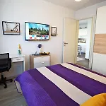 La struttura, composta da un balcone e una zona spogliatoio, è dotata di un divano. Inoltre dispone di comfort moderni come un televisore e una TV a schermo piatto con canali satellitari. I servizi di sicurezza in camera includono una cassetta di sicurezza. L'appartamento vanta 1 camera da letto con cuscini anallergenici. L'alloggio include 1 bagno che offre un bagno alla francese, una vasca da bagno e una doccia. Inoltre, troverai asciugacapelli, teli da bagno e pantofole.